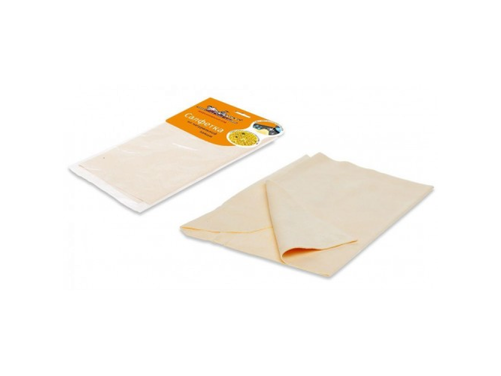 Салфетка из натуральной замши (30x28 см) в целлофановой упаковке с навершием - 1шт.