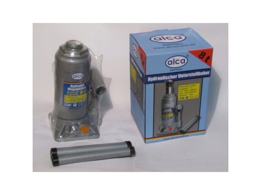 Домкрат гидравлический 8 т. Высота подъёма: 200 — 385 мм. Вес: 5,0 кг.