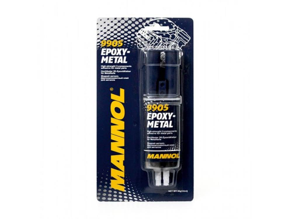 MANNOL Epoxy-Metal предназначена для быстрого и надежного склеивания стали, алюминия, латуни, меди, железа, олова, свинца и различных сплавов. Затвердевает в течение 4 минут. Полное затвердевание наступает через 2-3 часа, соединение приобретает высокую механическую прочность на сдвиг (3-5 N/mm2) и выдерживает температуру до 150 °С. Применима для заполнения трещин и пустот, просверленных отверстий, для восстановления поврежденной резьбы, а также как шпатлевка для ремонта плоских поверхностей. Этот продукт склеивает также керамику, бетон, дерево и их соединения.