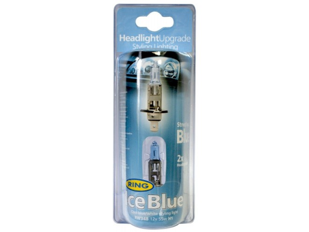 Автолампа ICE BLUE в пластиковой упаковке (по 2 шт): 12 вольт, мощность 55W, цоколь H1 (P14.5s)