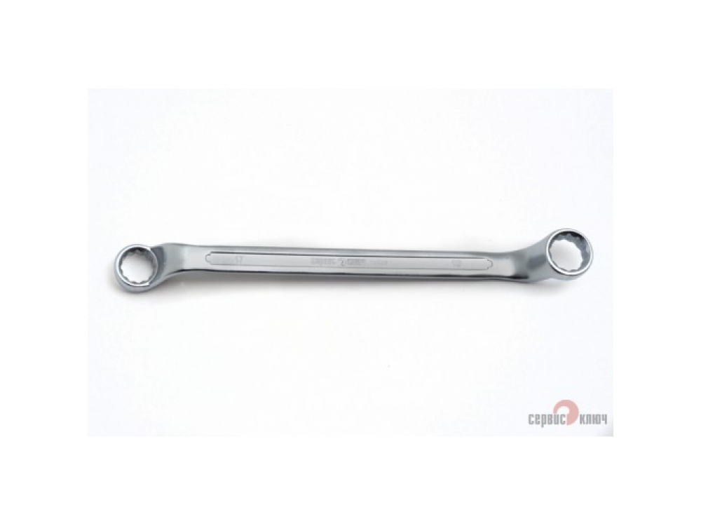 Двусторонний накидной ключ со смещением. Имеет на обоих концах 12-гранные накидные профили. Накидной профиль со смещением предоставляет более широкие возможности при работе в ограниченном пространстве. Изготовлен из высококачественной хромованадиевой (Crv) стали методом холодного штампа, тверность 40-45 HRC.