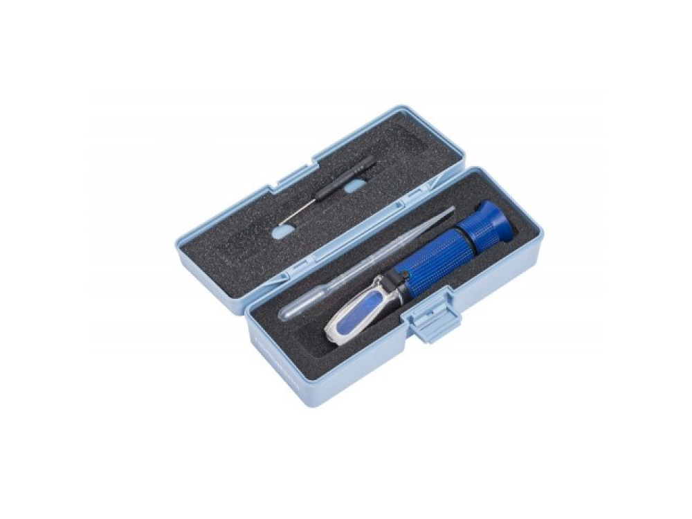 Портативный оптический рефрактометр NORDBERG 501 – это точный инструмент для определения точки замерзания охлаждающей жидкости, жидкости для омывания стёкол и плотности аккумуляторов. Этот прибор может быть использован для экспресс анализа температуры кристаллизации. Технические характеристики: Диапазон проверяемых точек замерзания 0°С – -50°С Диапазон проверяемой плотности аккумуляторов 1.10 кг/л – 1.40 кг/л Минимальная градация точки замерзания 5°С Минимальная градация плотности электролита 0.01 кг/л Концентрация этиленгликоля 0 - 60% Составные части и комплектация: Призма. Крышка призмы. Установка "0". Зеркальная трубка. Окуляр наведения резкости. Салфетка для призмы. Пипетка для забора жидкостей 1 шт.