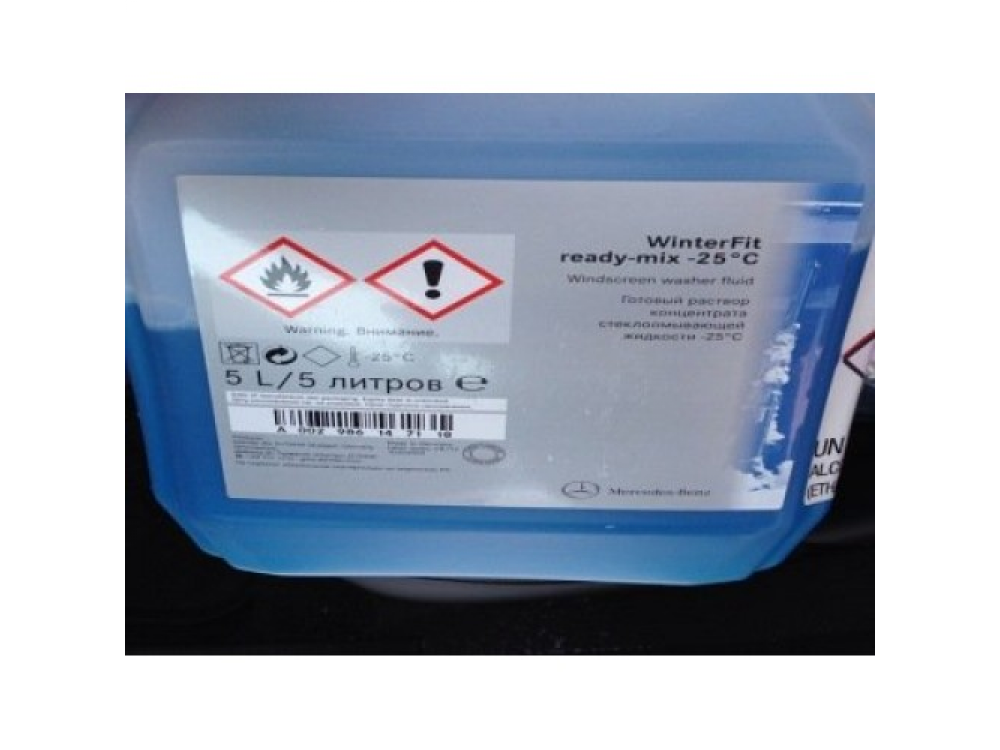 Стеклоомывающая жидкость WinterFit, 5 л. Идеально очищает стекло от дорожной грязи и препятствует образованию наледи. Безопасна для здоровья. Не замерзает до –25°С. Артикул: A0029861471 18