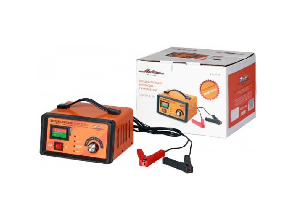 Зарядно-пусковое устройство имеет ручной режим зарядки с селектором максимального зарядного тока 2/10 Ампер и максимальным пусковым током 55А.